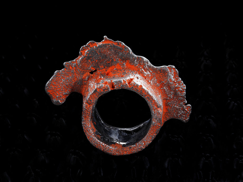 Les bagues ne résultent pas d’un moulage en cire, les anneaux ont été sculptée en négatif dans le moule (terre de Delft) et l’epace entre les deux parties du moule a créé des bavures.