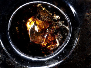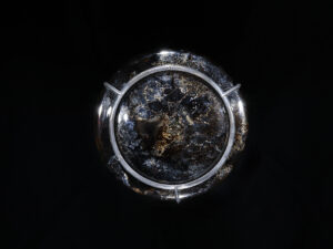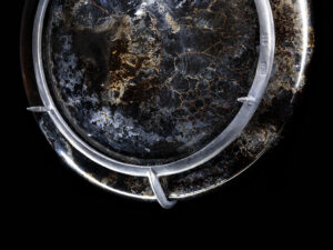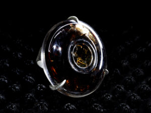 Broche, bague, bracelet, ambre de la Baltique (Éocène), verre soufflé, argent oxydé